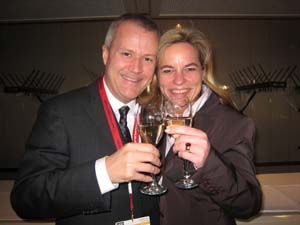 January 11, 2008 Partying in Dusseldorf!Lest you think I’ve totally lost my luster and missed out on the social events, there were two of note. The World Advertising Gift Exchange (WAGE) celebrated its 50th anniversary with a festive reception that drew over 100 attendees. Polyconcept’s annual party on the boat they bring in especially for the occasion. Philippe Varnier and his team invite clients, friends and competitors, all of whom clearly revel in the open bar, sumptuous buffet and electrifying band.