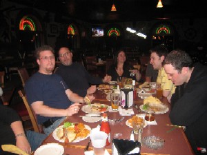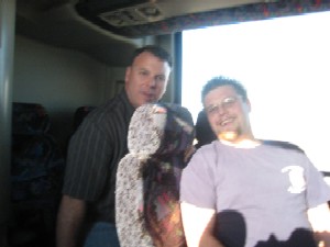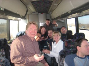 (Clockwise from bottom): Andy Townes, Laura Fisher, Eddie Roth, Dan Burke, Tom Vann, me and Benji the Bus Driver. Shortly after this photo was taken, my face slid completely off my head.